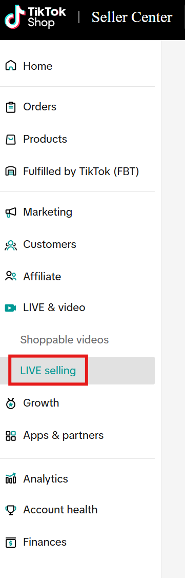 Step 1: Log into your Seller Center, go to LIVE & Video, and then select LIVE Selling.