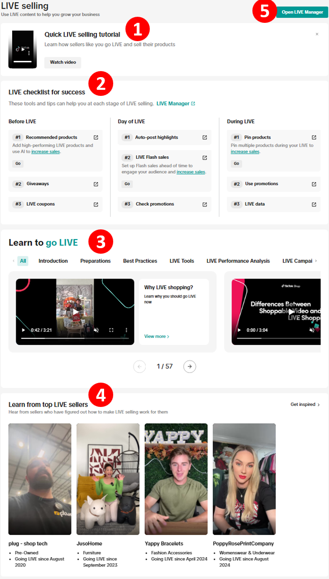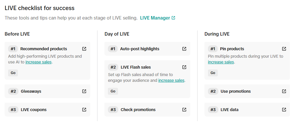 - Get operational support: Clear checklists and guidance reduce uncertainty and help you become a consistent, high-performing LIVE seller.