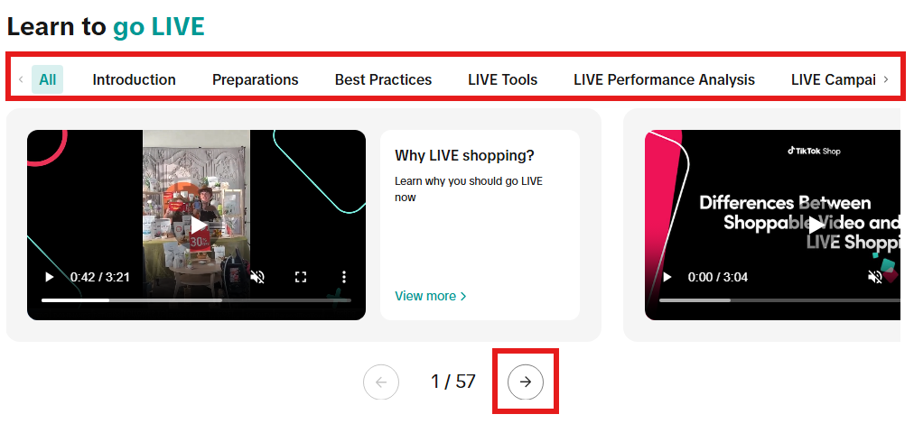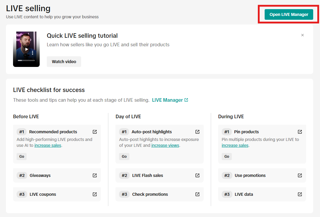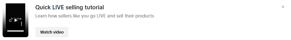 Step 3: The first section, Quick LIVE Selling Tutorial, is a one-minute video that explains how LIVE selling works and how to approach it on TikTok Shop.